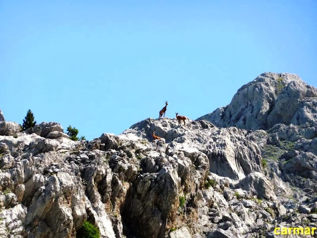 La atención es permanente, las afiladas lajas y la áspera caliza se agarran a manos y suelas. Los sarrios, que encuentran refugio en esta zona tan poco frecuentada por humanos, nos observan desde un punto elevado.